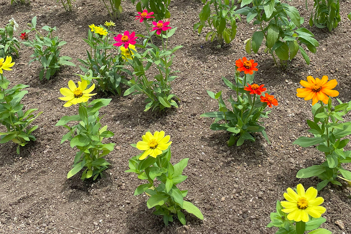 プランターの設置や花壇の手入れをご依頼いただいている企業・施設先にて、1年間を通して植物のメンテナンスをしています。年間を通して花が綺麗に咲いている状態を維持できるよう、チーム全体で取り組んでいます。